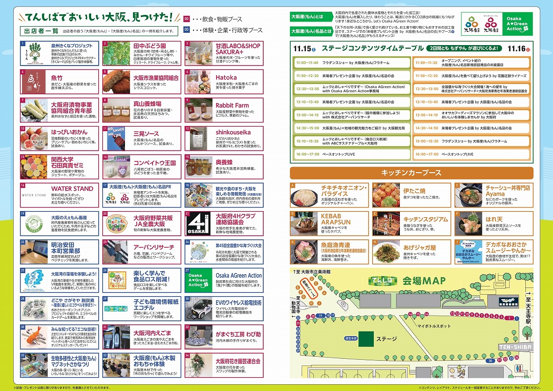 大阪産(もん)や大阪産(もん)名品を使用したキッチンカー、飲食・物販・体験ブースなどが登場します!